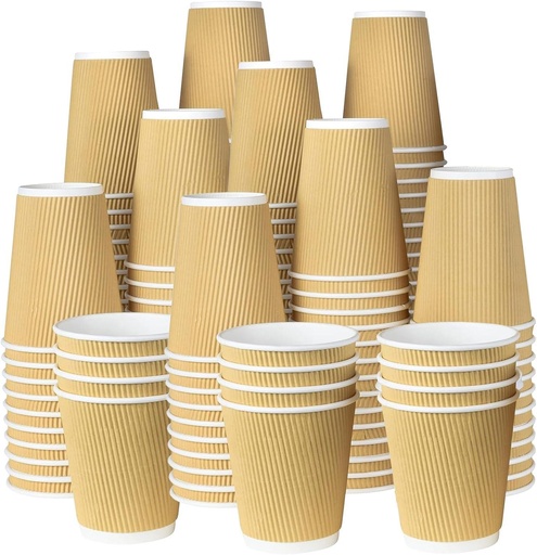 100 X 12oz Disposable Kraft Ripple Paper Cups Insulated Brown Paper Cups